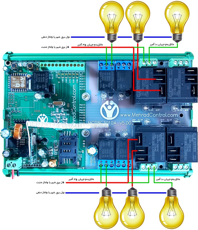 • امکان کنترل تمام خروجی ها از طریق یک پیامک